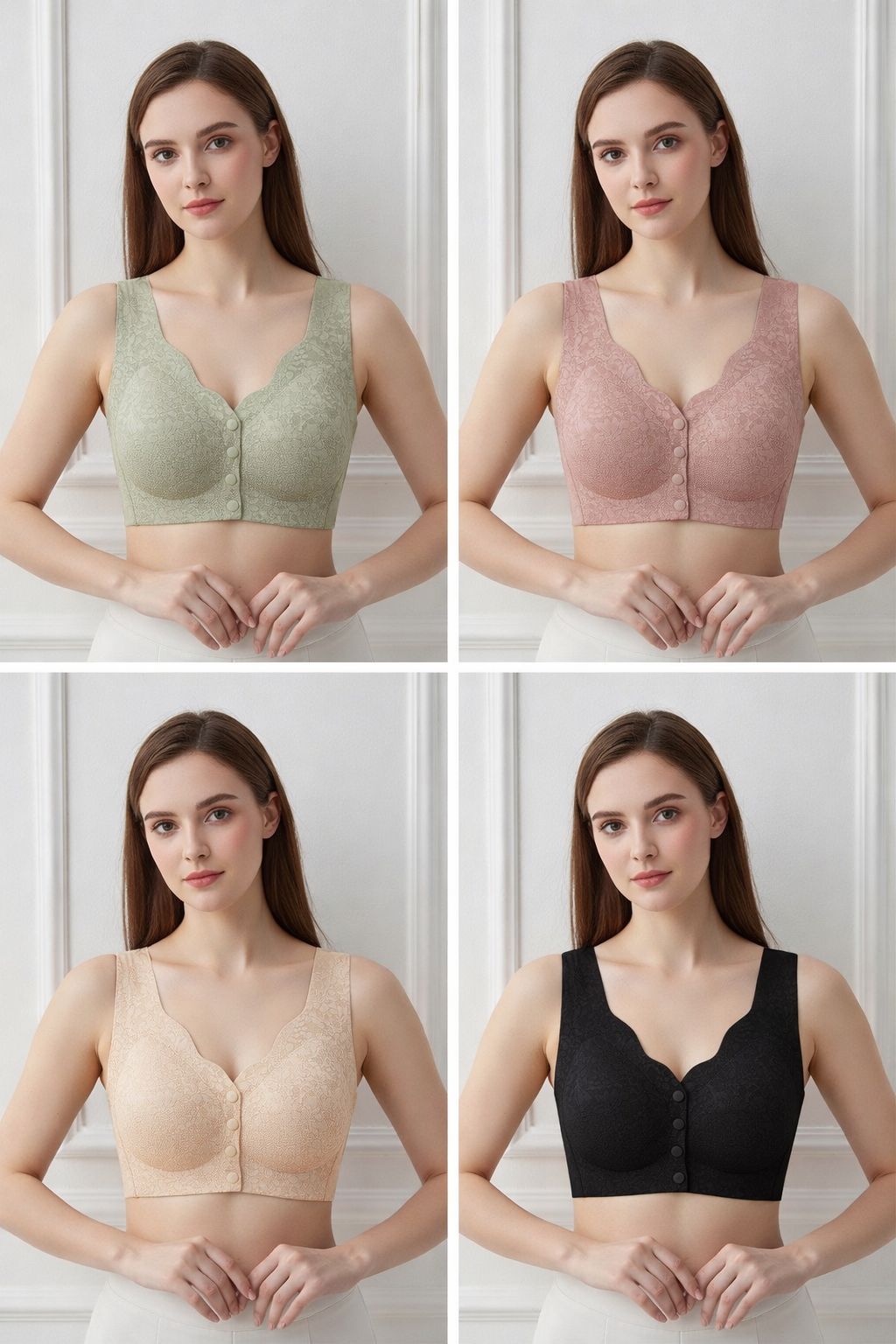 4-pack Front-Button Lace Comfort Bra – Elegant Support & Everyday Ease